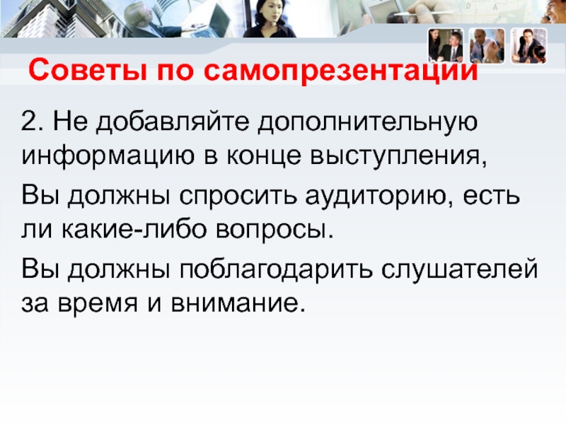 2. Не добавляйте дополнительную информацию в конце выступления,