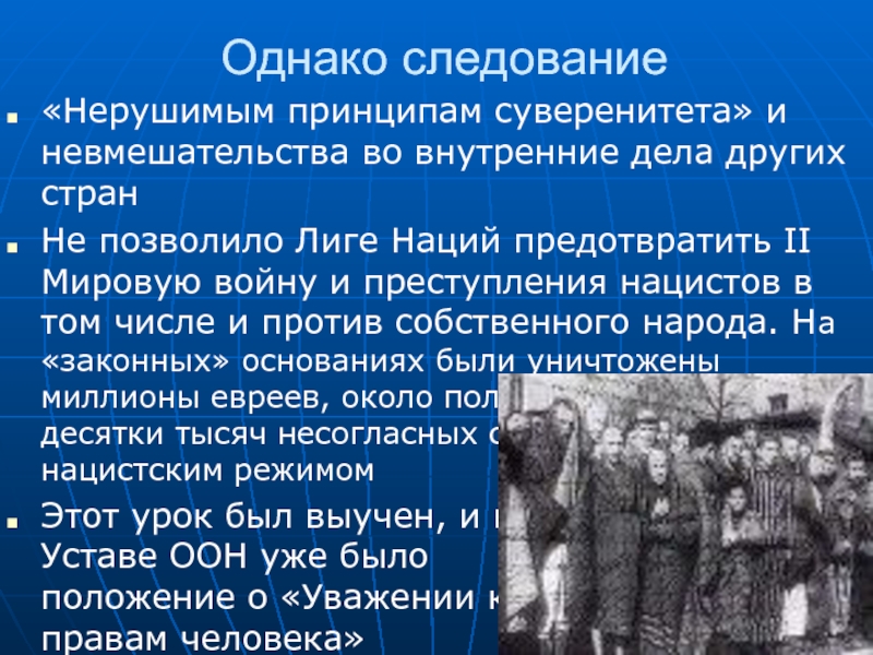 Этот урок был выучен, и в Уставе ООН уже было положение о «Уважении к правам человека»