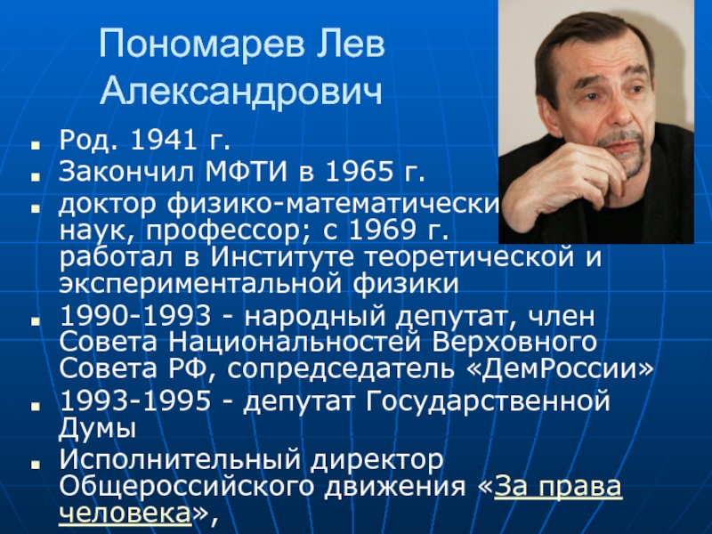 наук, профессор; с 1969 г. работал в Институте теоретической и экспериментальной физики