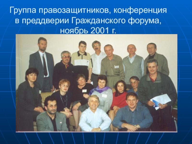 Слайд 68Группа правозащитников, конференция в преддверии Гражданского форума, ноябрь 2001 г.
