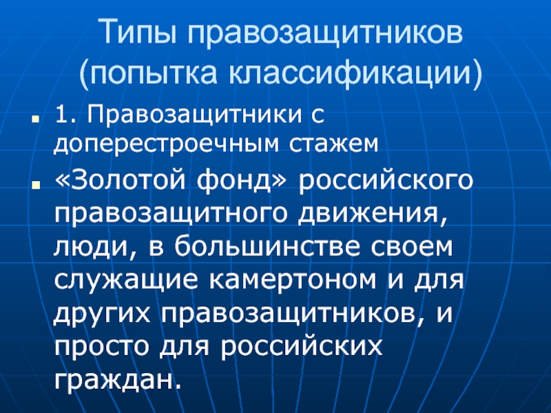 правозащитного движения, люди, в большинстве своем служащие камертоном и для