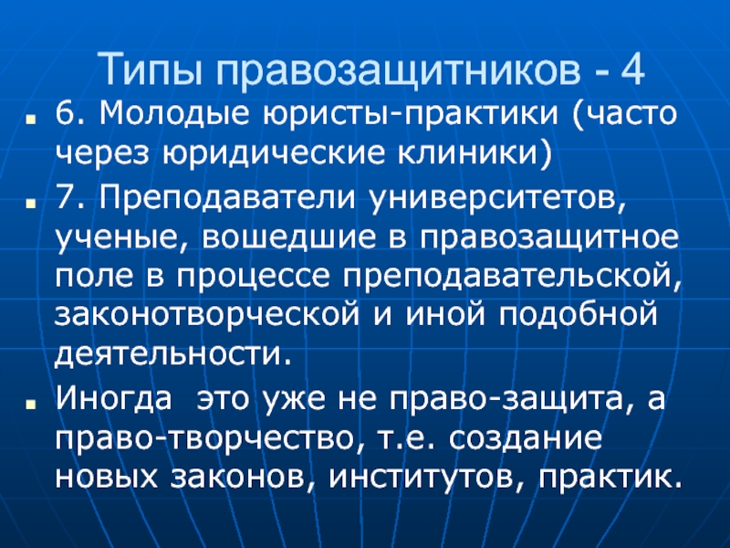 Иногда это уже не право-защита, а право-творчество, т.е. создание новых законов, институтов, практик.