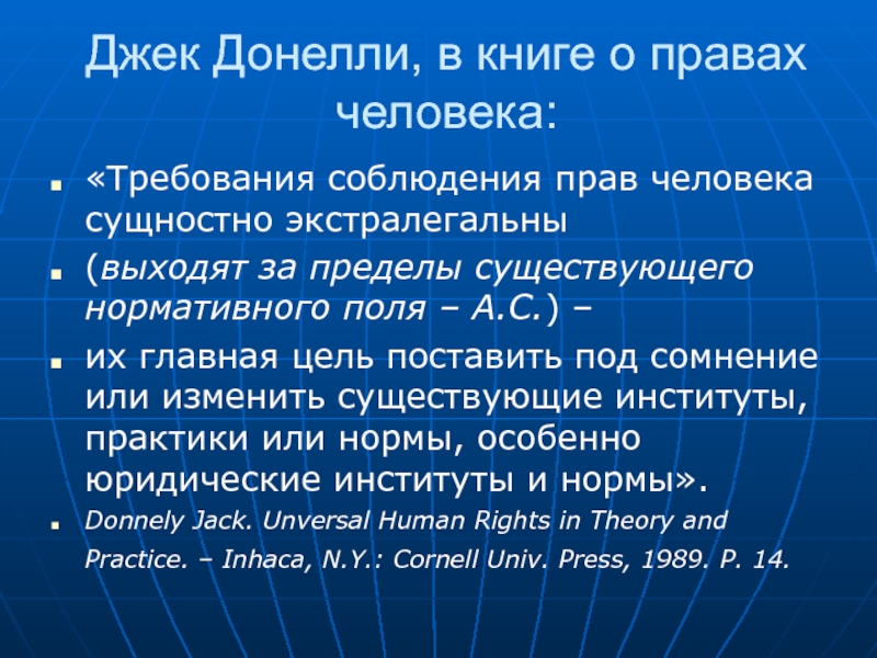 А как нормативную систему, основанную на приоритете прав человека, на существовании «естественных прав человека»
