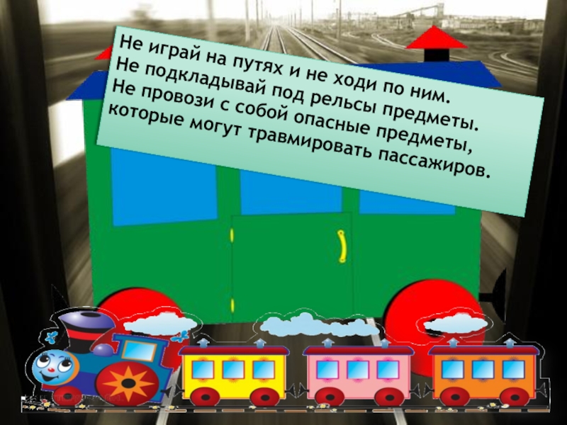 Слайд 6Не высовывайся из вагона во время движения поезда.