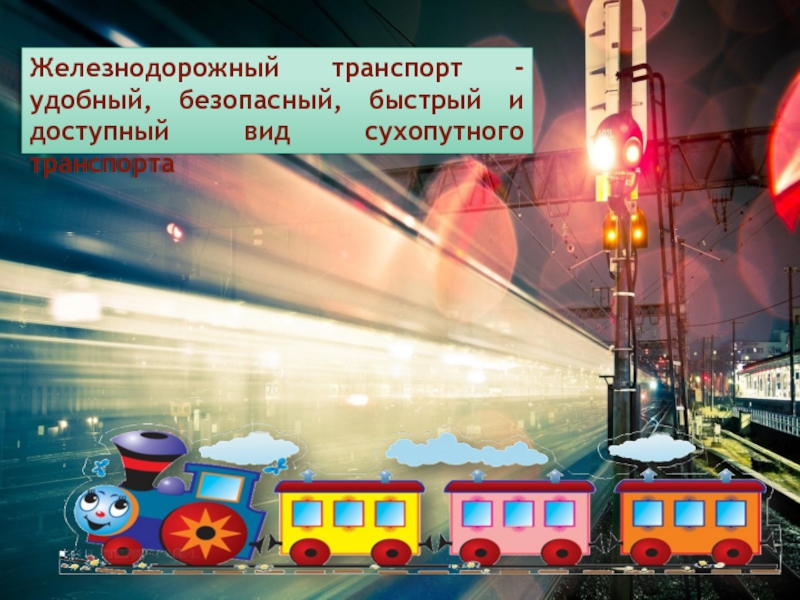 Слайд 2Железнодорожный транспорт - удобный, безопасный, быстрый и доступный вид сухопутного