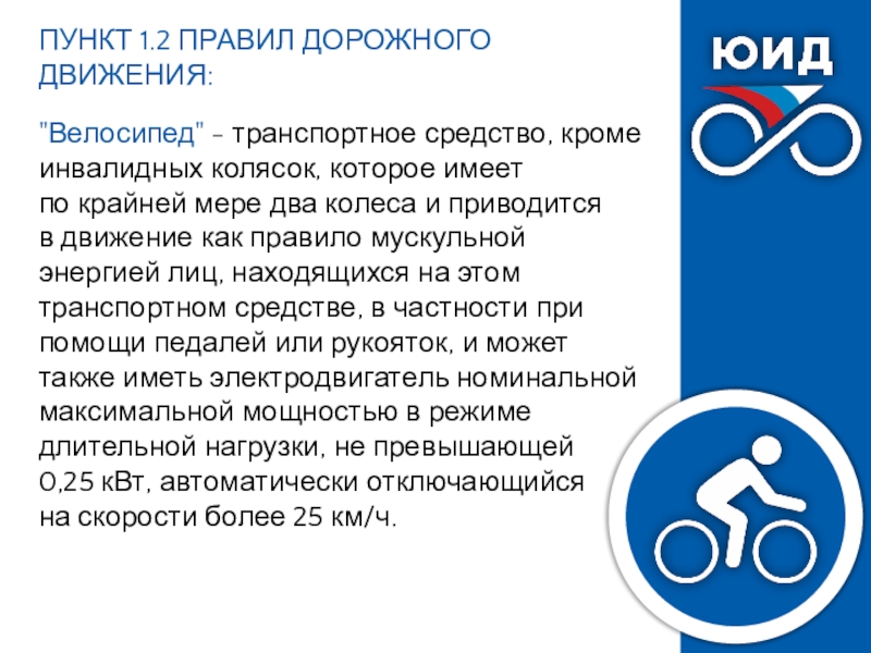 Спереди световозвращатель и фонарь или фара белого цвета (для движения в тёмное время суток и в условиях недостаточной видимости) (правила дорожного движения п.2.3.1 и «Основные положения по допуску транспортных средств к эксплуатации…», п. 6.)