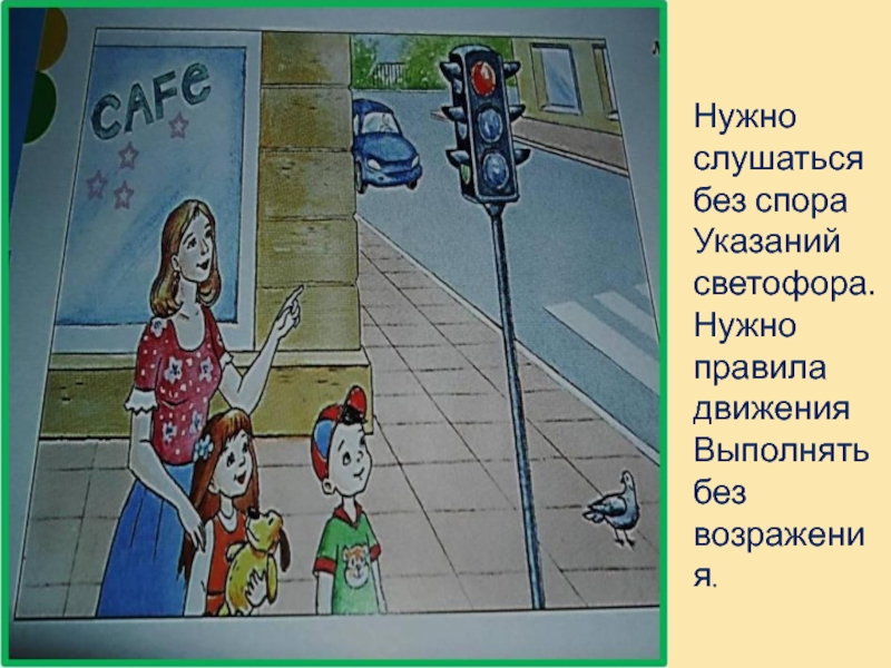Слайд 10Нужно слушаться без спора Указаний светофора. Нужно правила движения Выполнять без возражения.
