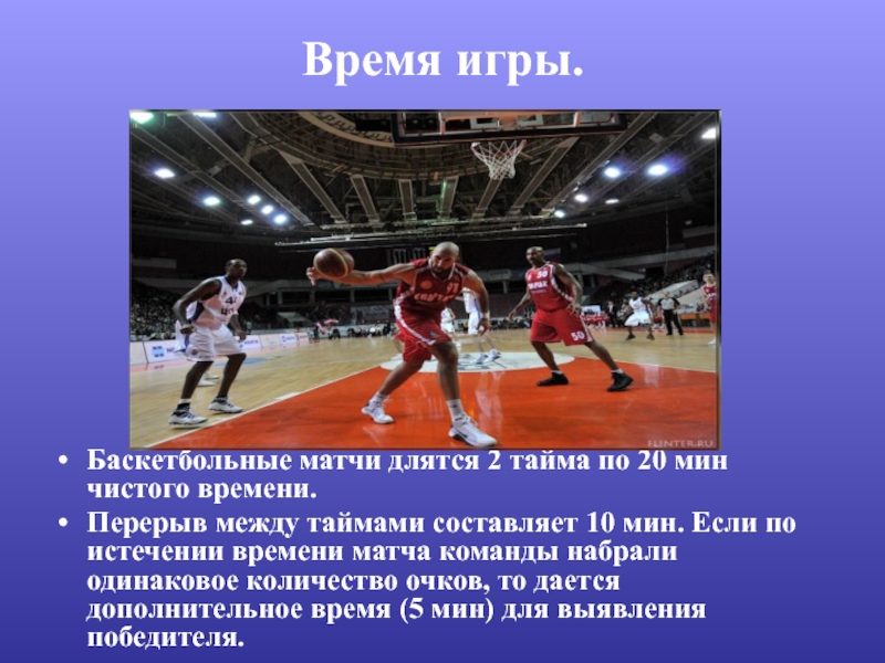 Баскетбольные матчи длятся 2 тайма по 20 мин чистого