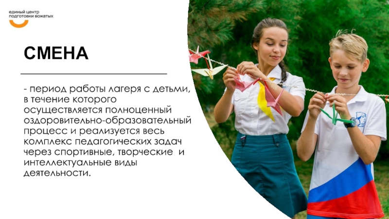 СМЕНА - период работы лагеря с детьми, в течение которого осуществляется полноценный оздоровительно-образовательный процесс и реализуется весь