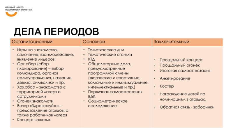 ПРАВИЛА КУРСАШКОЛА ВОЖАТСКОГО МАСТЕРСТВАПериоды смены. Логика развития смены.