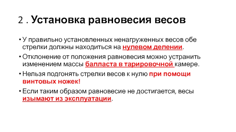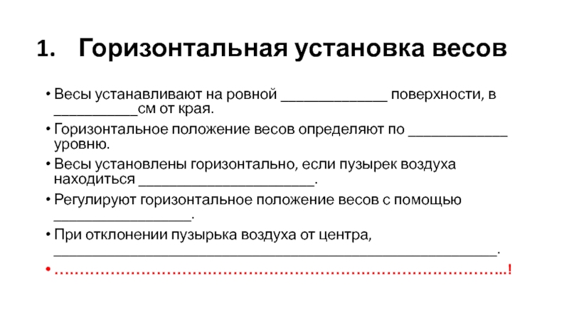 Горизонтальное положение весов определяют по жидкостному уровню.