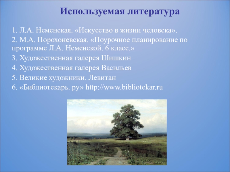 1. Л.А. Неменская. «Искусство в жизни человека».