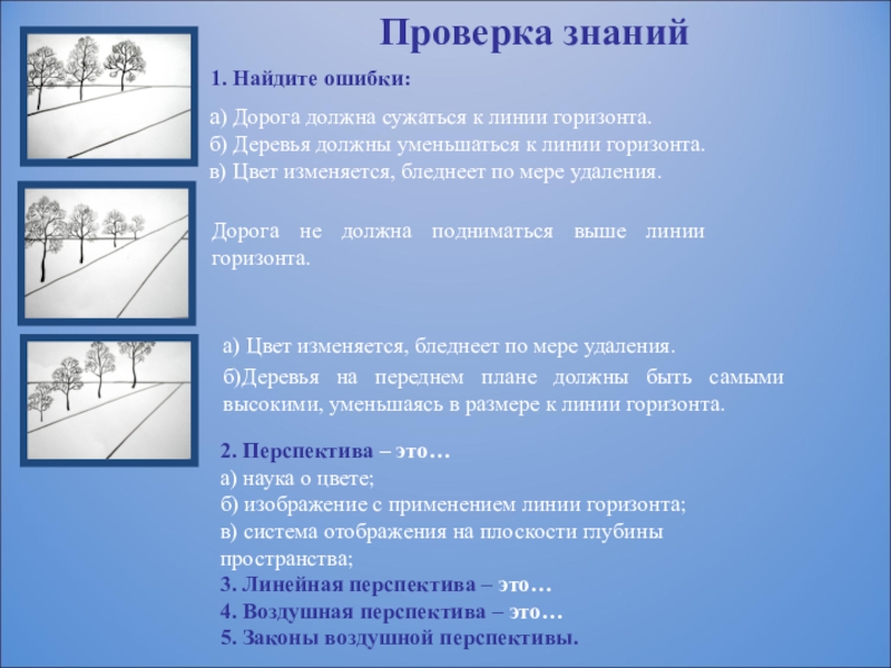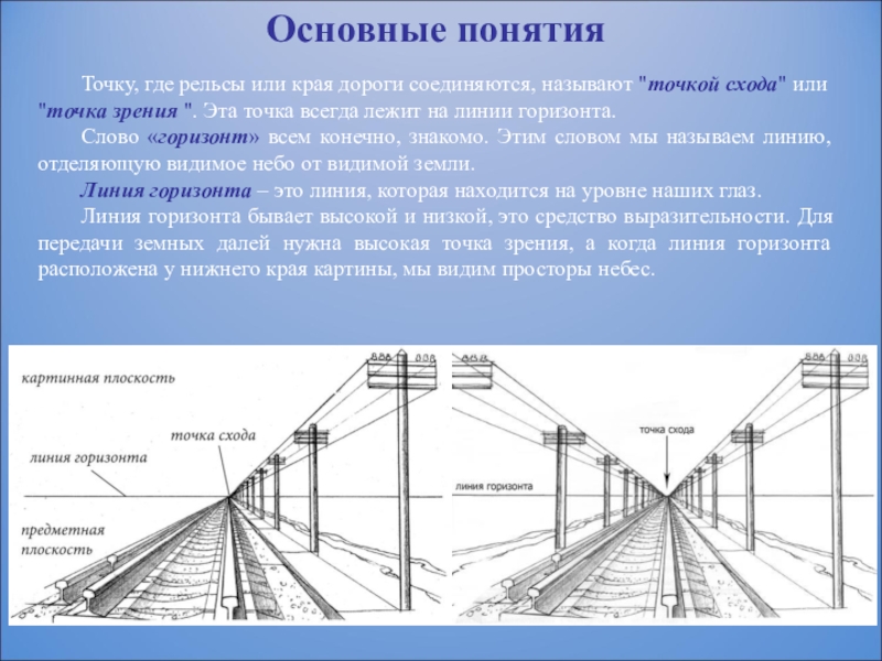 Слайд 10Правила изображения линейной перспективы