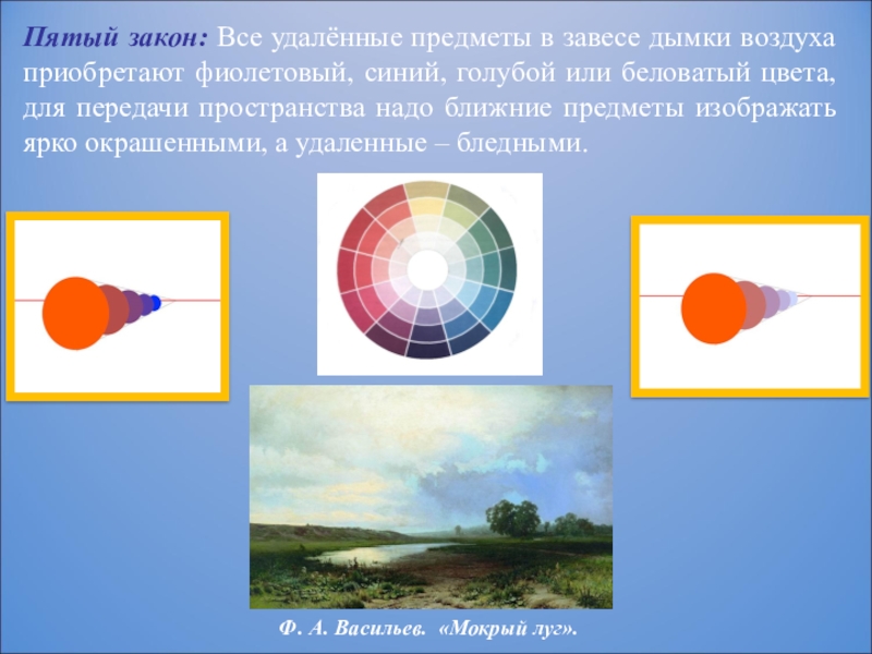 цвета, для передачи пространства надо ближние предметы изображать ярко окрашенными, а удаленные – бледными.