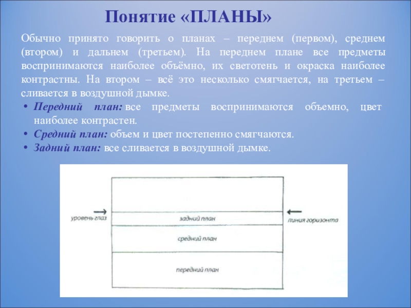 Обычно принято говорить о планах – переднем (первом), среднем