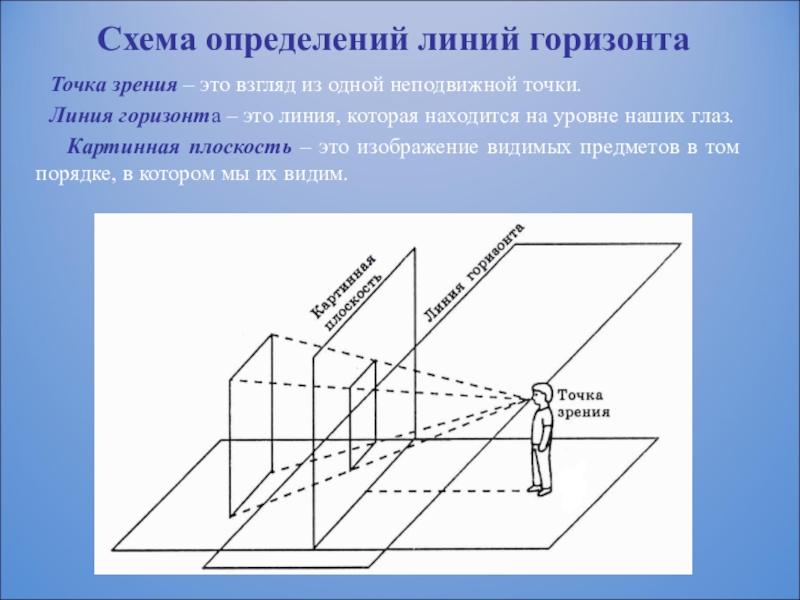 Слайд 8Схема определений линий горизонта