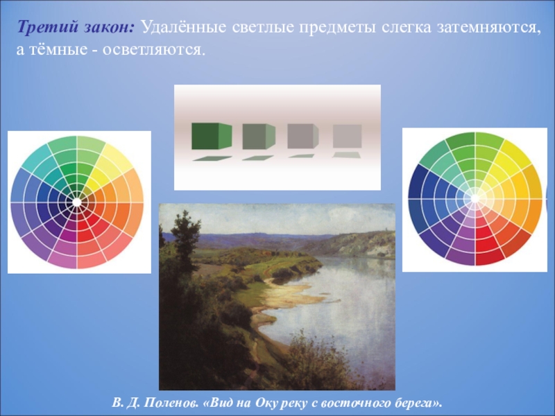 Третий закон: Удалённые светлые предметы слегка затемняются, а тёмные -