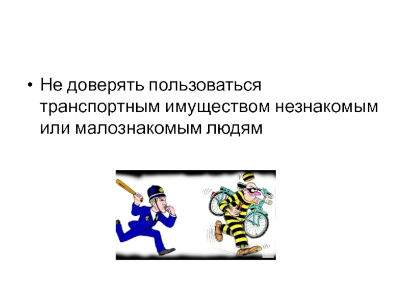 Слайд 7Не доверять пользоваться транспортным имуществом незнакомым или малознакомым людям
