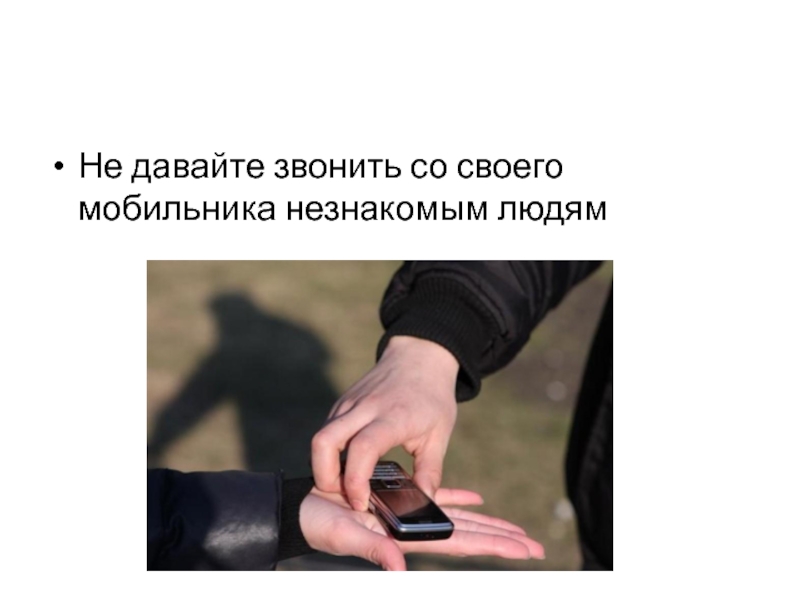 Слайд 9Не давайте звонить со своего мобильника незнакомым людям