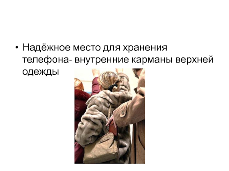 Слайд 11Надёжное место для хранения телефона- внутренние карманы верхней одежды