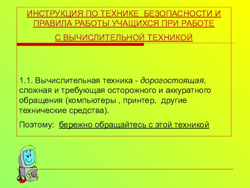 осторожного и аккуратного обращения (компьютеры , принтер, другие технические средства).
