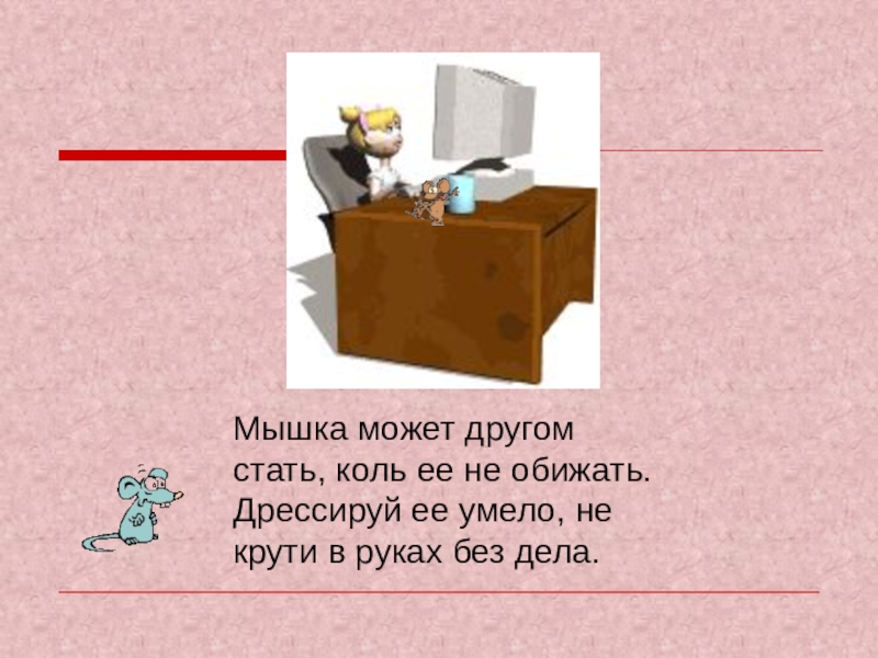 Слайд 18Мышка может другом стать, коль ее не обижать. Дрессируй ее