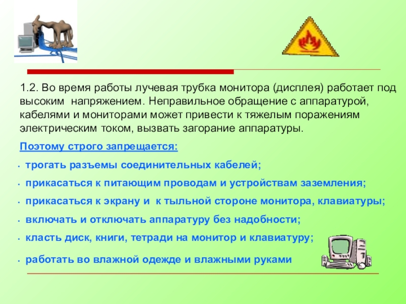 Слайд 41.2. Во время работы лучевая трубка монитора (дисплея) работает под