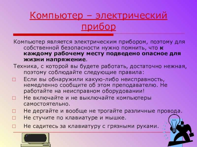 а также текущие указания учителя; следите за исправностью аппаратуры