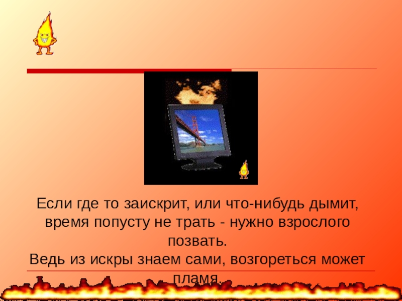 Слайд 17Если где то заискрит, или что-нибудь дымит,