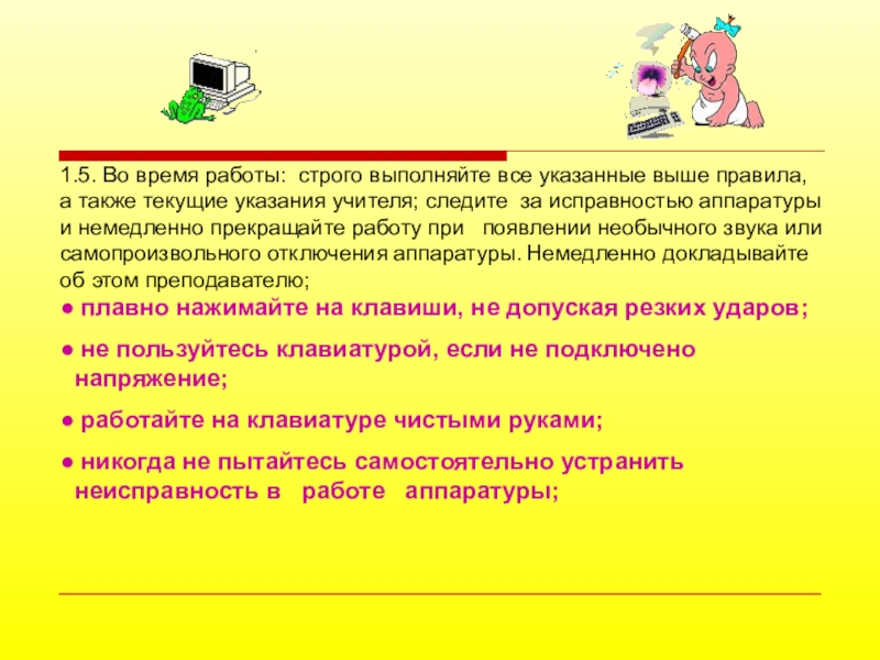 1.5. Во время работы: строго выполняйте все указанные выше правила,