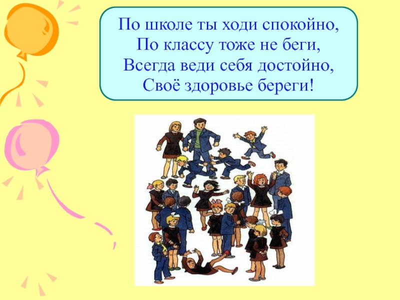 Слайд 11По школе ты ходи спокойно, По классу тоже не беги, Всегда веди
