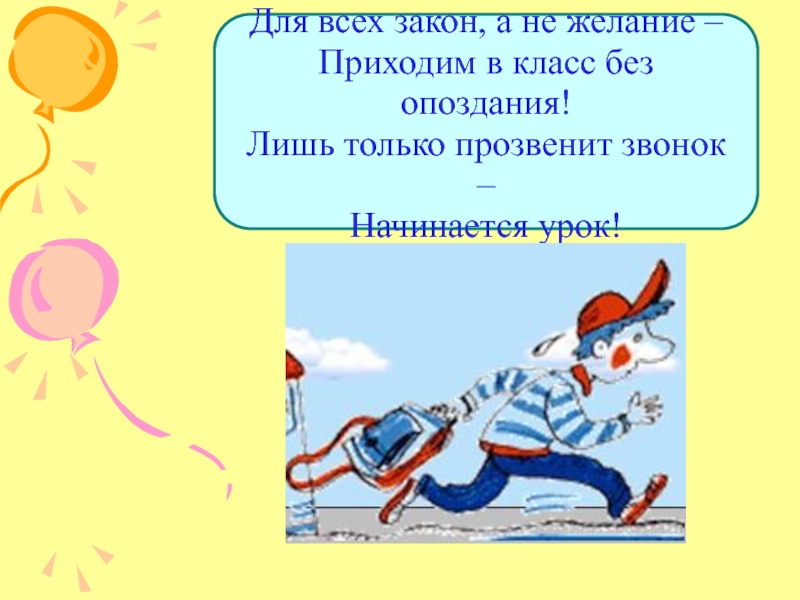 опоздания! Лишь только прозвенит звонок – Начинается урок!