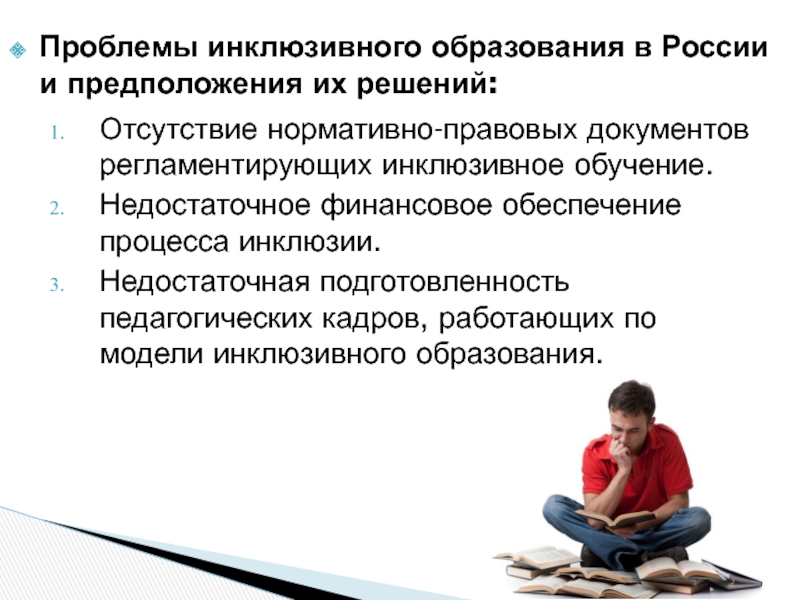 Слайд 18Проблемы инклюзивного образования в России и предположения их решений: