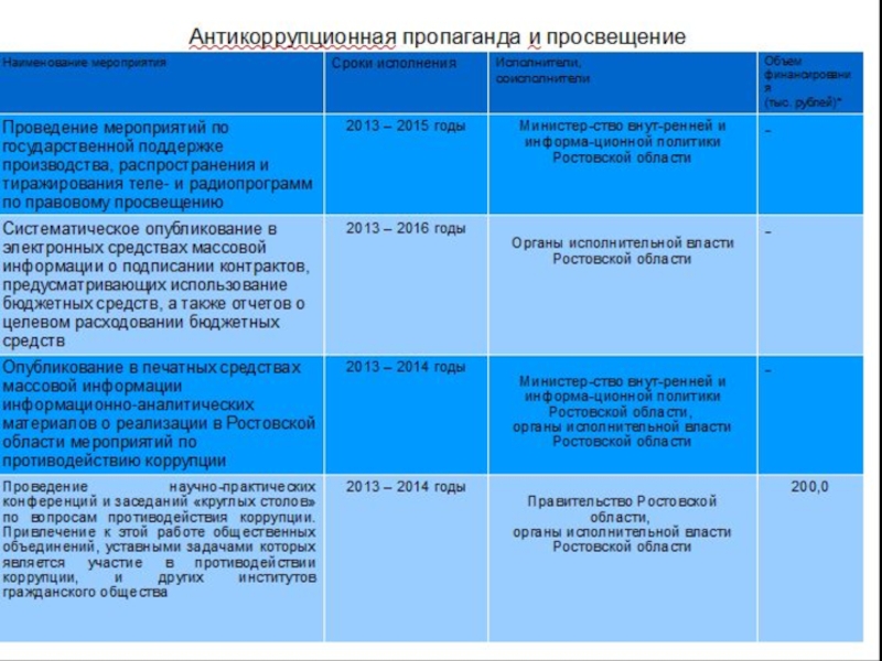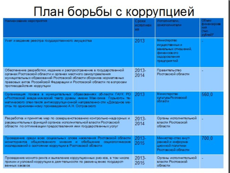 Слайд 14выработка программы по противодействию коррупции в данной конкретной области;