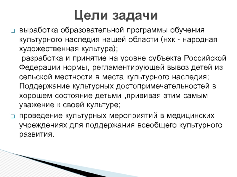 Слайд 16выработка образовательной программы обучения культурного наследия нашей области (нхк -