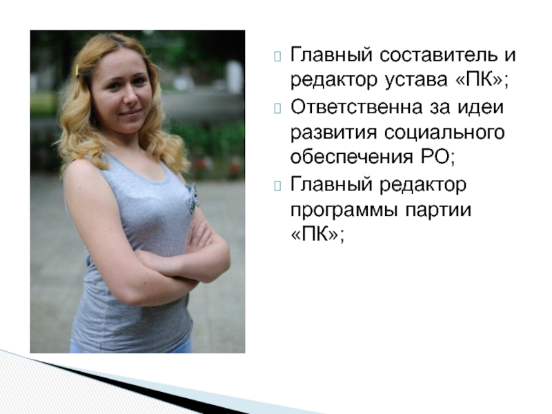Слайд 6Главный составитель и редактор устава «ПК»;