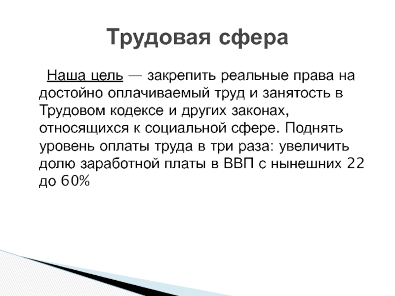 Слайд 8 Наша цель — закрепить реальные права на достойно