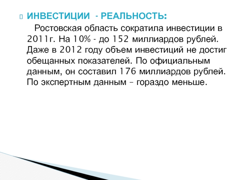 Слайд 29ИНВЕСТИЦИИ - РЕАЛЬНОСТЬ: