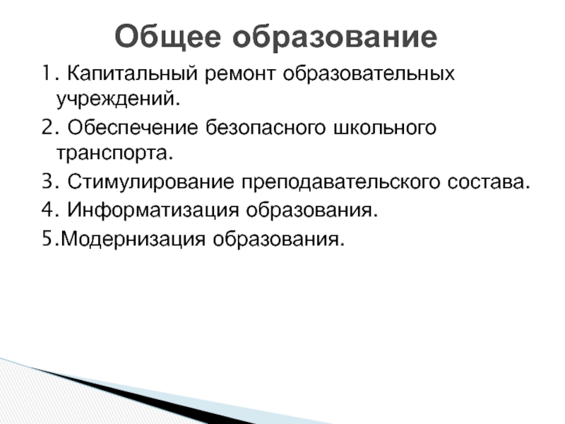 Слайд 111. Капитальный ремонт образовательных учреждений.