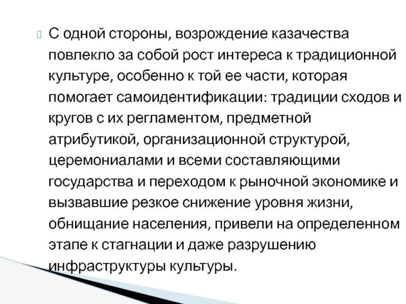 Слайд 43С одной стороны, возрождение казачества повлекло за собой рост интереса