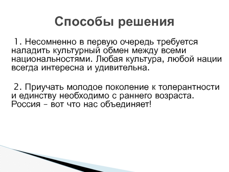 2. Приучать молодое поколение к толерантности и единству необходимо с раннего возраста. Россия – вот что нас объединяет!