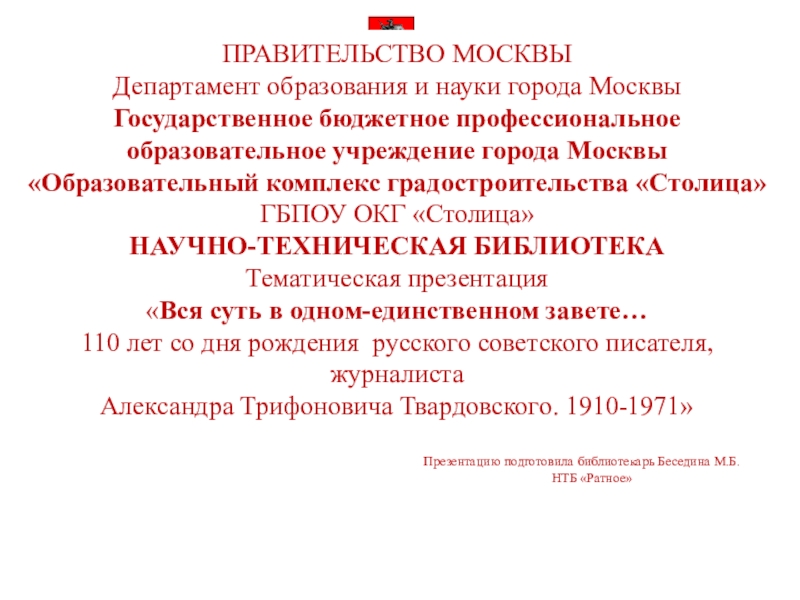 Презентацию подготовила библиотекарь Беседина М.Б.