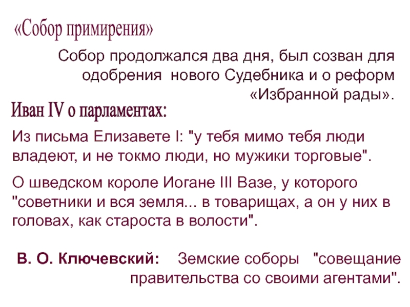 Из письма Елизавете I: "у тебя мимо тебя люди владеют, и не токмо люди, но мужики торговые".