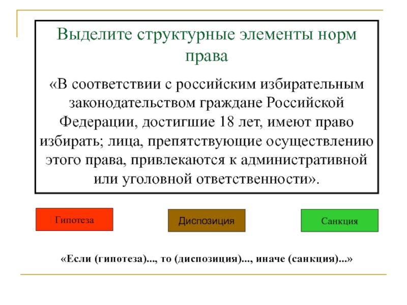 «Если (гипотеза)..., то (диспозиция)..., иначе (санкция)...»
