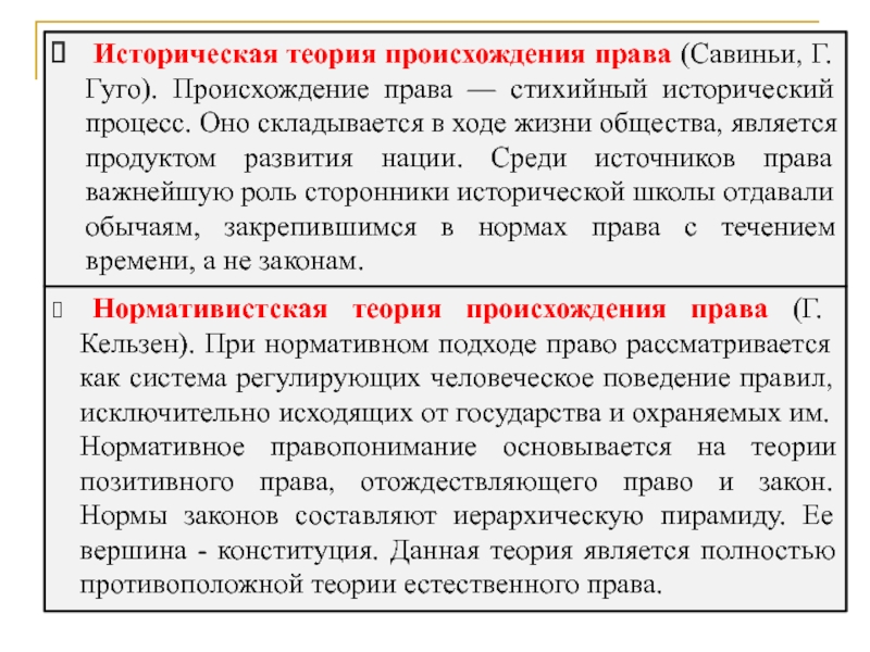 Слайд 5 Историческая теория происхождения права (Савиньи, Г.Гуго). Происхождение права —