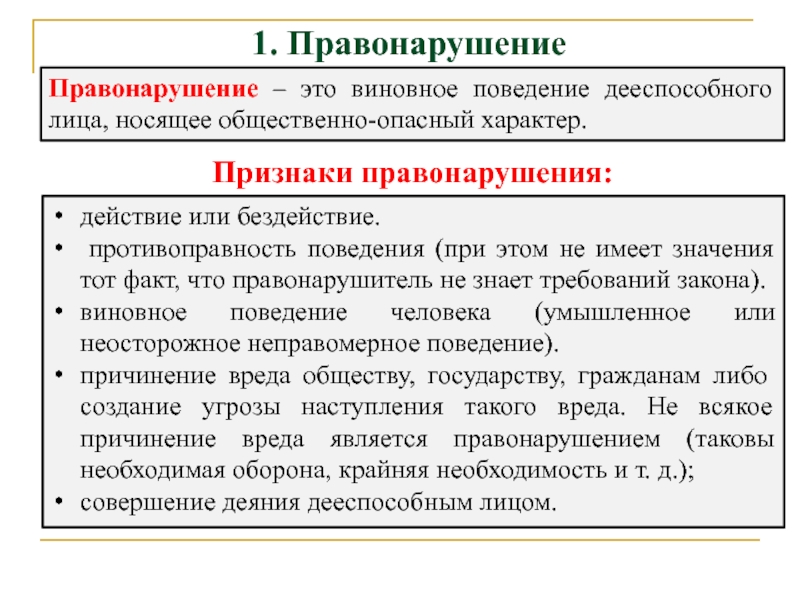 Правонарушение – это виновное поведение дееспособного лица, носящее