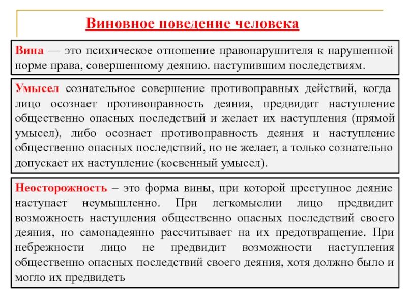 виновное поведение человека (умышленное или неосторожное неправомерное поведение).