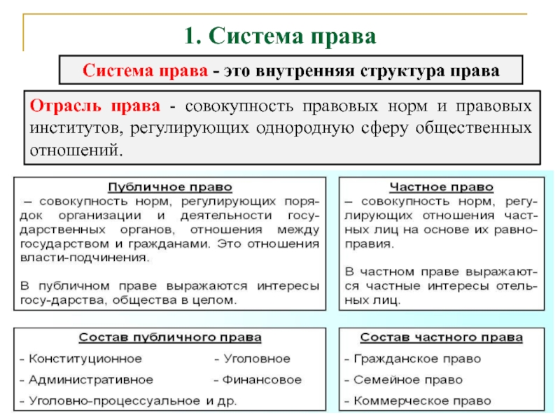 - совокупность правовых норм и правовых институтов, регулирующих однородную сферу