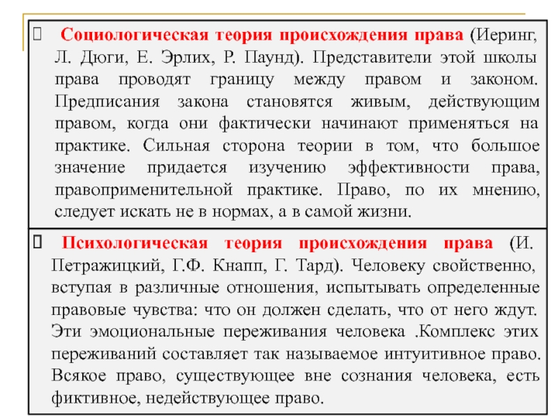 Слайд 7 Социологическая теория происхождения права (Иеринг, Л. Дюги, Е. Эрлих,