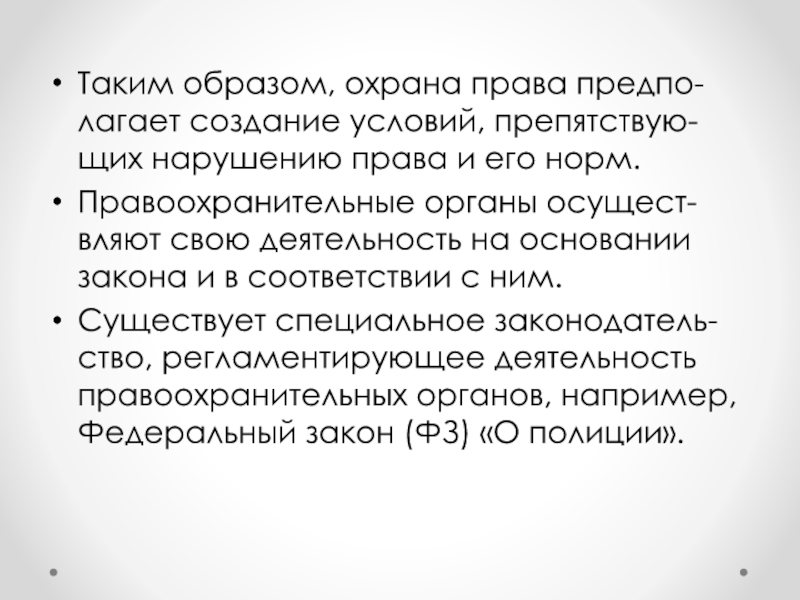 Слайд 6Таким образом, охрана права предпо-лагает создание условий, препятствую-щих нарушению права
